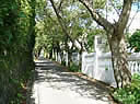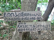 | この先は霊光寺や鎌倉高校、稲村ガ崎の海岸に出る道が続きます。どこに行くかはお好み次第。このコースは鎌倉市が管理していて、鎌倉山の住人の散策やペットとの散歩によく使われているようです。みなさんこのコースを大切にしている様子です。 |